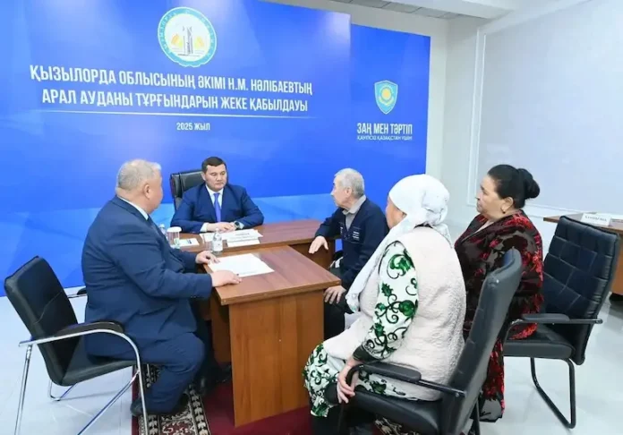 Облыс әкімі Нұрлыбек Нәлібаев құқық қорғау органдарының бірінші басшыларымен бірге Арал ауданындағы «Руханият орталығында» тұрғындарды жеке мәселелері бойынша қабылдады.