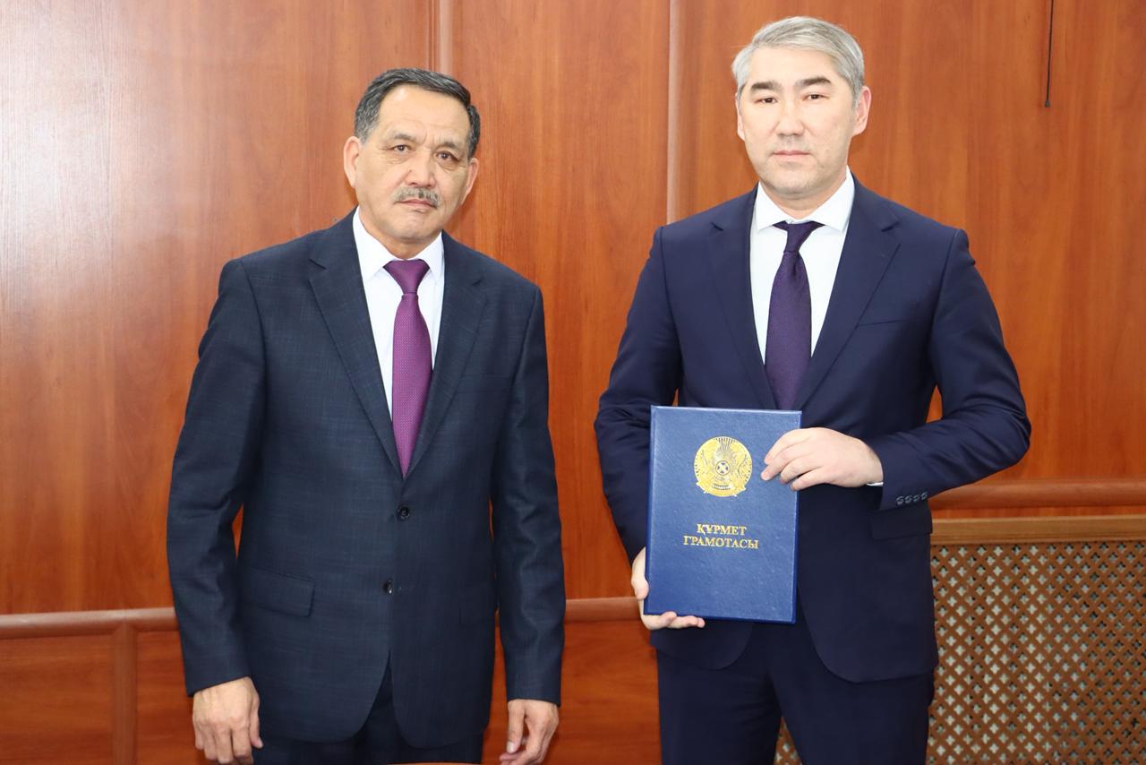 Жиында ауданнның әлеуметтік-экономикалық дамуына үлес қосқан Е.Бахтияров ауданның «Құрмет грамотасымен» марапатталды.